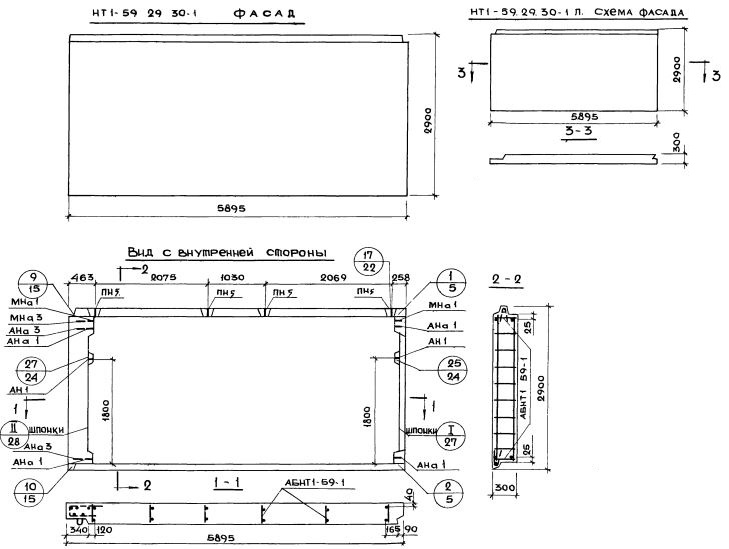 НТ1-59.29.30-1 Наружная стеновая панель торцевая по Серии 1.132-1.